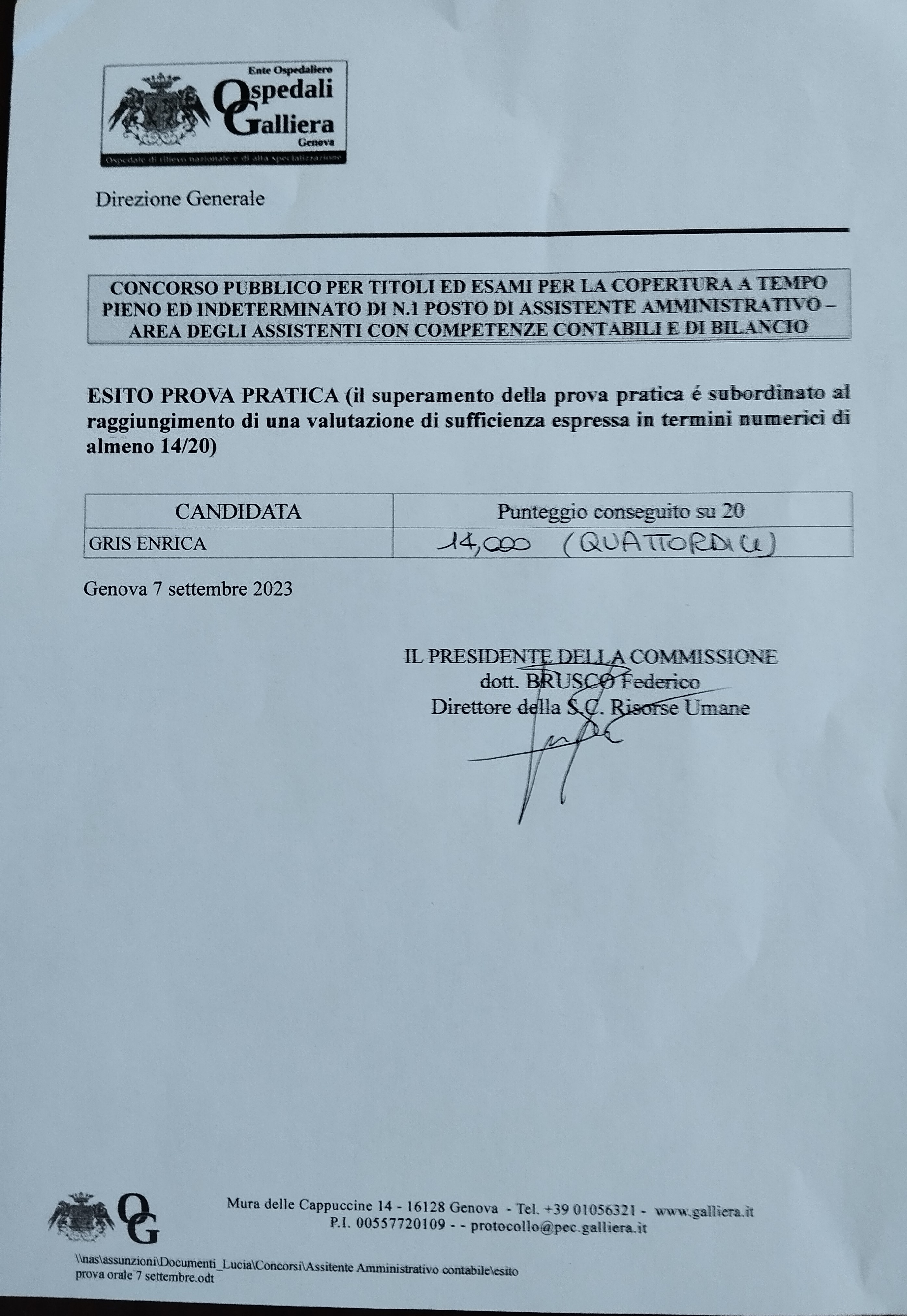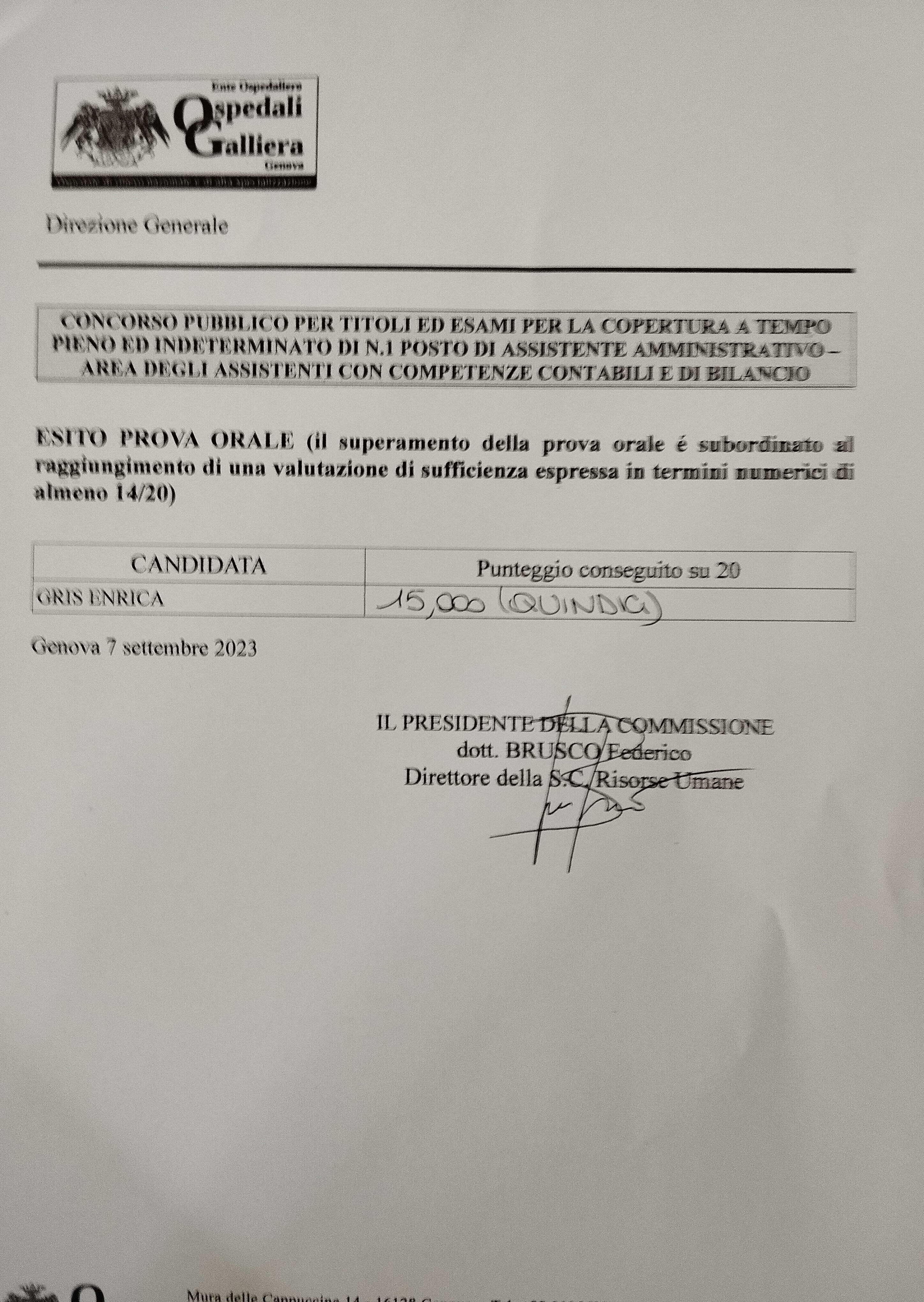 N. 1 posto a tempo pieno e indeterminato di Assistente Amministrativo con competenze contabili e di bilancio - Area degli Assistenti